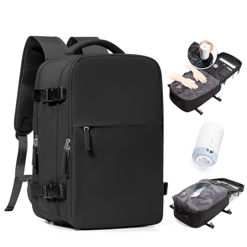 BJLFS Sac à dos sous vide avec pompe Ryanair Wizzair 40x30x20 Femme Sac Cabine Avion 40x30x20 sous vide Bagage Cabine 45x36x20 Easyjet Bagage à Main Sac pour Ordinateur Portable 14 Pouces Homme Noir