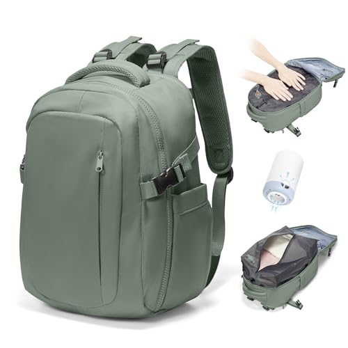 BJLFS Sac à dos sous vide avec pompe Ryanair Wizzair 40x30x20 Femme Sac Cabine Avion 40x30x20 sous vide Bagage Cabine 45x36x20 Easyjet Bagage à Main Sac pour Ordinateur Portable 14 Pouces Homme Vert