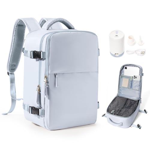 BJLFS Sac à dos sous vide avec pompe Ryanair Wizzair 40x30x20 Femme Sac Cabine Avion 40x30x20 pour Ryanair Bagage Cabine 45x36x20 Easyjet Bagage à Main Sac pour Ordinateur Portable Homme Grau Bleu