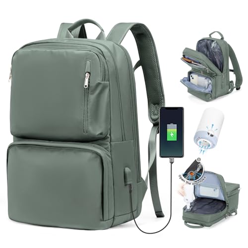 BJLFS Sac à dos sous vide avec pompe Ryanair Wizzair 40x30x20 Femme Sac Cabine Avion 40x30x20 pour Ryanair Bagage Cabine 45x36x20 Easyjet Bagage à Main Sac pour Ordinateur Portable Homme Grau Vert