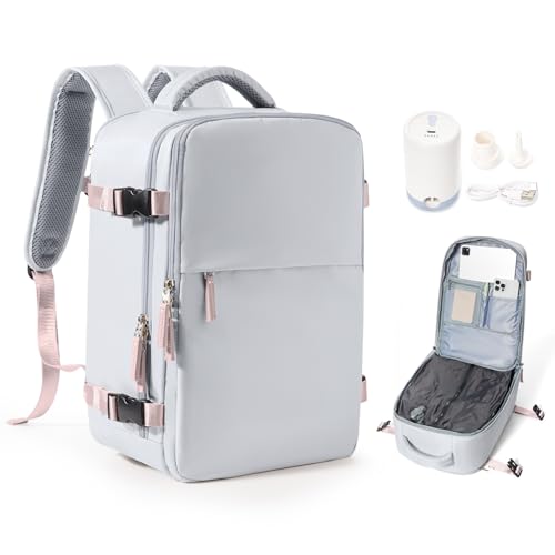 BJLFS Sac à dos sous vide avec pompe Ryanair Wizzair 40x30x20 Femme Sac Cabine Avion 40x30x20 pour Ryanair Bagage Cabine 45x36x22 Easyjet Bagage à Main Sac pour Ordinateur Portable Homme Gris rose