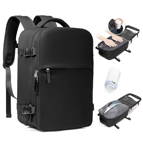 BJLFS Sac à dos sous vide avec pompe Ryanair Wizzair 40x30x20 Femme Sac Cabine Avion 40x30x20 sous vide Bagage Cabine 45x36x20 Easyjet Bagage à Main Sac pour Ordinateur Portable 14 Pouces Homme noir
