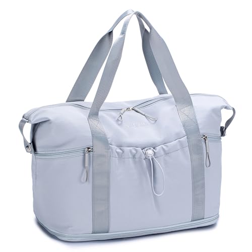 Paneerte Sac de Voyage Femme Sac Weekend Femme Sacs de Voyage Sac Voyage Pliable Sac Cabine Avion Sac de Voyage Sec Et Humide, Sac de Sport Adapté Au Sport Et Aux Voyages, Gris
