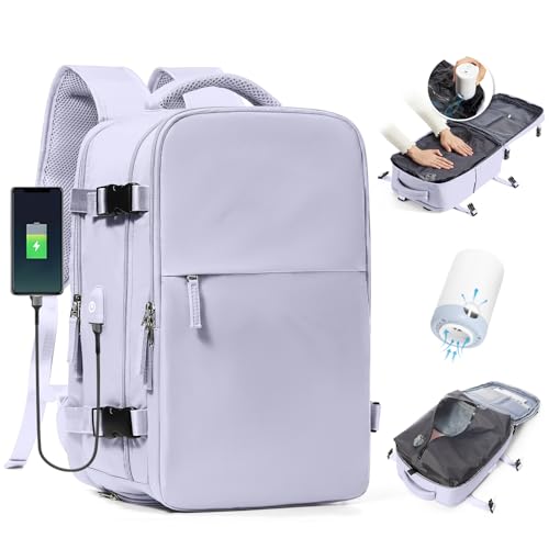 BJLFS Sac à dos sous vide avec pompe Ryanair Wizzair 40x30x20 Femme Sac Cabine Avion 40x30x20 pour Ryanair Bagage Cabine 45x36x20 Easyjet Bagage à Main Sac pour Ordinateur Portable Homme Grau Lila