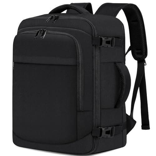 ENZOSUM Bagage Cabine 55x35x25 Sac à Dos Voyage Cabine Avion Sac cabine 55x35x25 pour Air France 48L Valise Cabine Homme Femme Sac à Dos pour Ordinateur Portable 18 Pouces,Noir