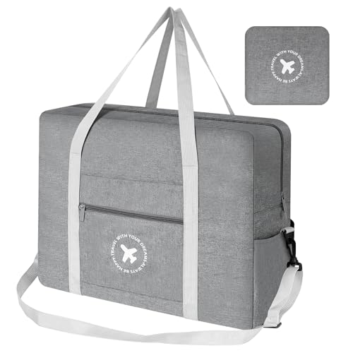AiQInu Sac de Voyage Pliable 45x36x20cm, Sac de Bagage à Main Léger pour Easyjet, Sac Cabine Avion Sac de Sport avec Bandoulière (Gris)