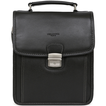 Sac Bandouliere Hexagona Sac porte travers en cuir ref 48608 Noir 23*14*5