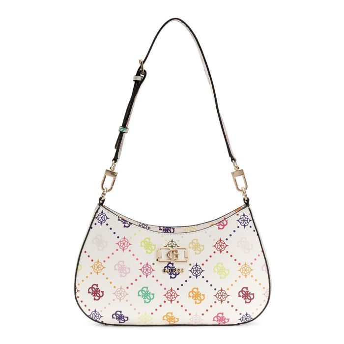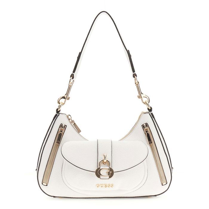 GUESS Sac à épaule bandoulière beige blanc pour femme - Dorys Top Zip Crossbody Bag Sand Logo 293255