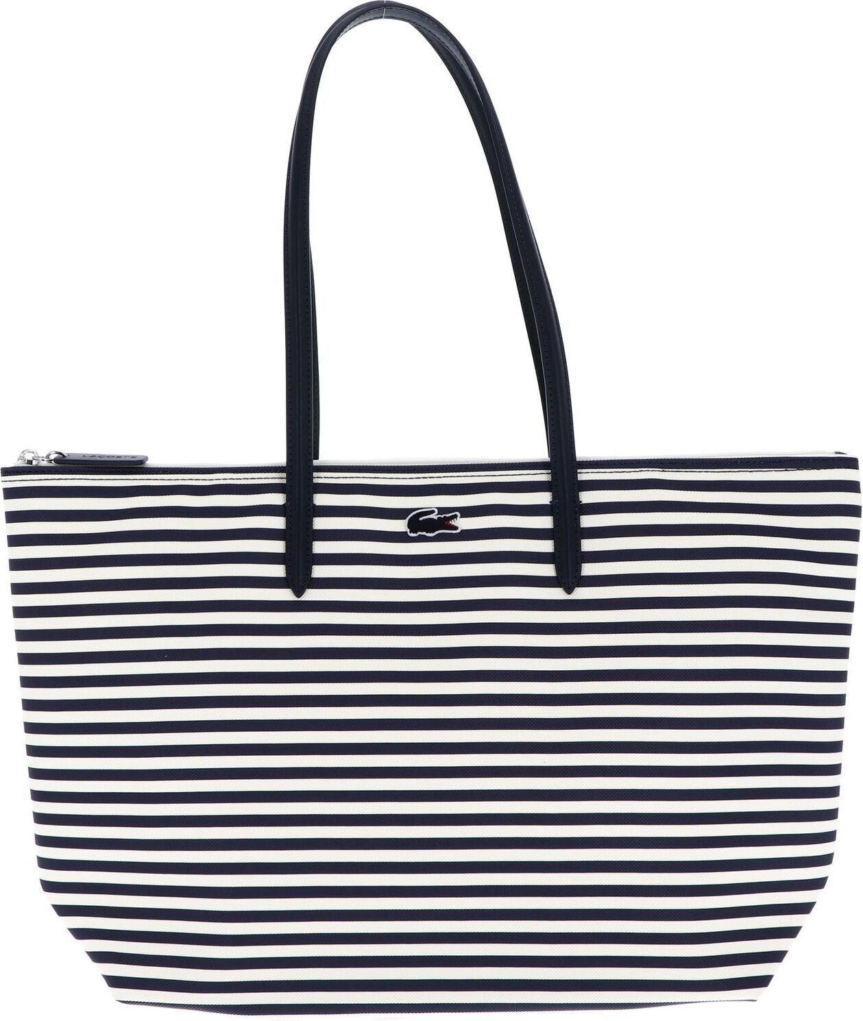 LACOSTE sac à épaule sac shopper L.12.12 Concept Shopping Bag Stripes Marine Farine blanc bleu marine