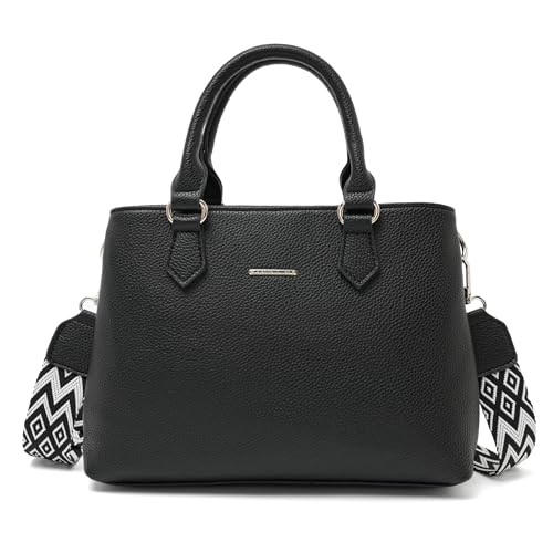 Mabecol Sac à Main Femme, Sac Bandoulière Femme PU Élégant avec Bandoulière Tressée Large Sacs Cabas Idéal pour Cours Shopping et Sorties Quotidiennes (Noir)
