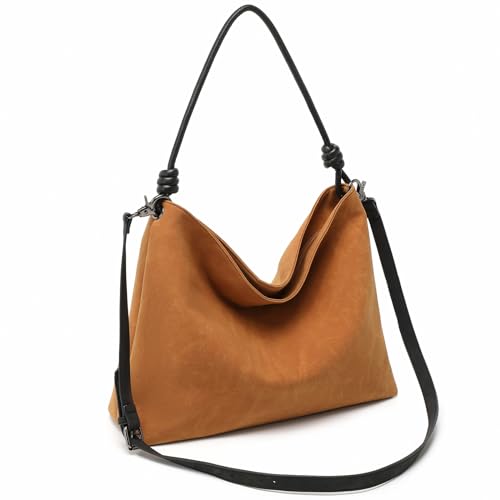 Gluckstar Sac a Main Femme Grand Sac Cabas Femme, Tote Bag, Sacs à Main Portés épaule, Sacsde Cours en Daim Suédé pour le Quotidien, Travail et Courses (Marron)
