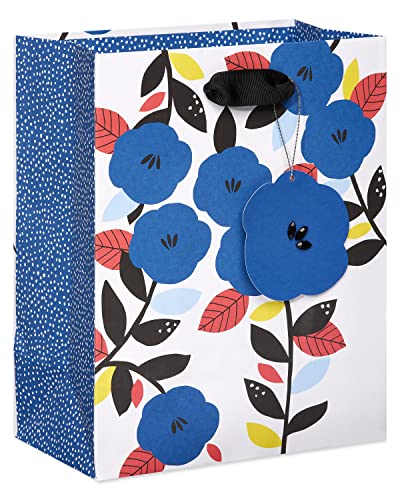 Papyrus Sac cadeau moyen de 9 pouces (fleurs bleues) pour les anniversaires, les mariages, les fêtes prénuptiales, les fêtes prénatales et toutes les occasions (1 sac)