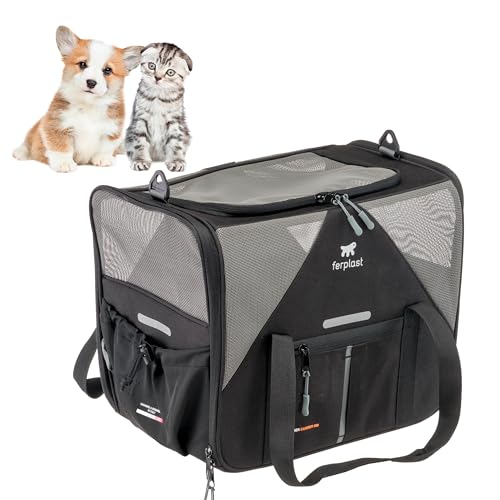 Ferplast Sac Transport Chien Voyager Carrier, Sac de Transport pour Chat, Poignées et bandoulière réglables, Sangle de sécurité, Double Ouverture latérale, avec Coussin, Max 15 Kg, 50x35x37h cm, Noir