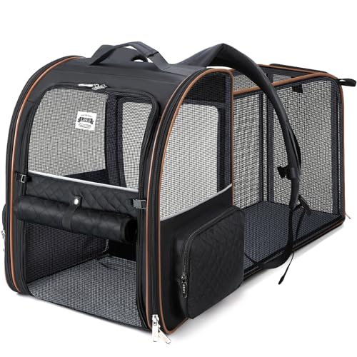 PARENCE Sac De Transport Chat/Sac De Transport Chien pour Chats, Petits Chiens, Chatons Ou Chiots, Souple et Pliable avec Tapis renforcé pour Voyage en Avion, Voiture et Train Noir