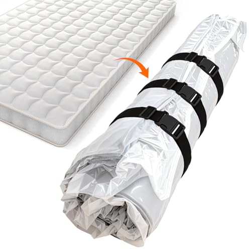 QWORK® Sac Compactor pour Matelas 140/160X200 cm, Compactor Rangement Sous Vide 200x240 cm avec 3 Sangles de Fixation, Réduction d'Espace jusqu'à 80%