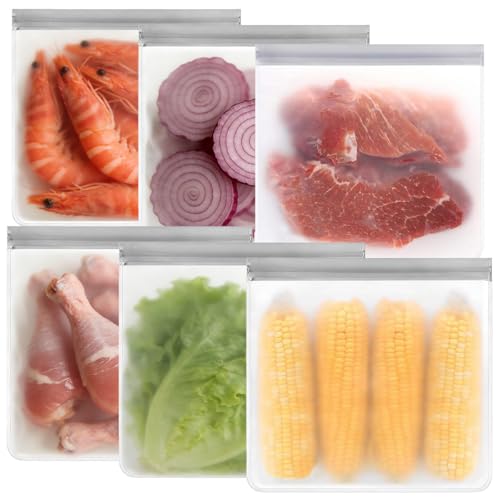 Lot de 6 Gallon Sac Congelation Zip, Sac Congelation Reutilisable, Sacs Alimentaires et pour Sandwichs, Pochette Alimentaire Réutilisable sans BPA, Sacs de Rangement Alimentaire en Silicone