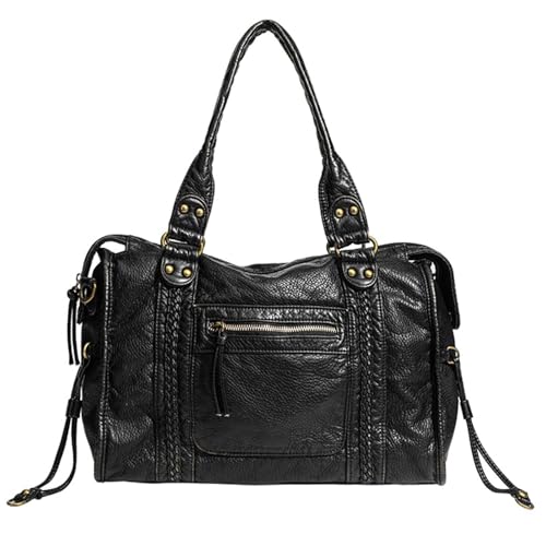 Angel Barcelo Sacs à main pour femmes Hobo à la mode spacieux Sac à main à bandoulière pour femme Sac à main en cuir lavé (G-Noir)