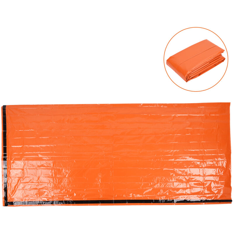 Sac de couchage de survie portable extérieur imperméable et réfléchissant, matelas de camping orange pour rester au chaud.