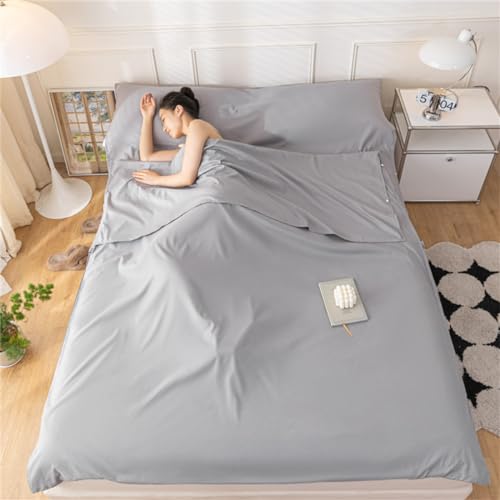 Sac De Couchage en Coton Drap De Couchage 1 2 Personnes Draps, avec Fente Couchage pour Oreiller pour Hôtel, Motel Et Voyage en Sac à Dos, Drap De Camping Léger (Gris,160x210cm)