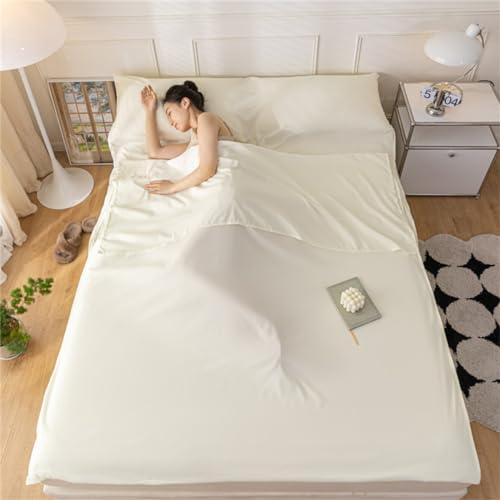 Sac De Couchage en Coton Drap De Couchage 1 2 Personnes Draps, avec Fente Couchage pour Oreiller pour Hôtel, Motel Et Voyage en Sac à Dos, Drap De Camping Léger (Beige,180x210cm)