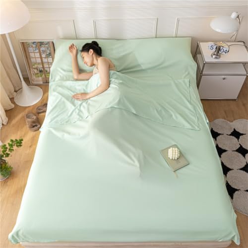 Sac De Couchage en Coton Drap De Couchage 1 2 Personnes Draps, avec Fente Couchage pour Oreiller pour Hôtel, Motel Et Voyage en Sac à Dos, Drap De Camping Léger (Vert,200x210cm)