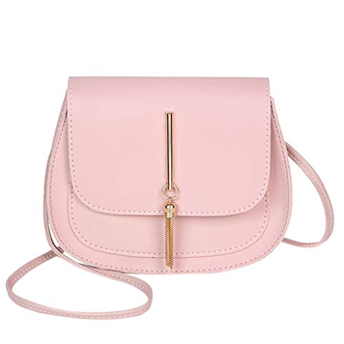 Sac Bandouliere Femme Cuir Tassel Portable Sac Besace Petit Sac A Main Sac De Cours LycéE Fille Pas Cher Sacs Une ÉPaule Simple Mode Pure Couleur Enveloppe Cabas (18x6x15cm, rose)