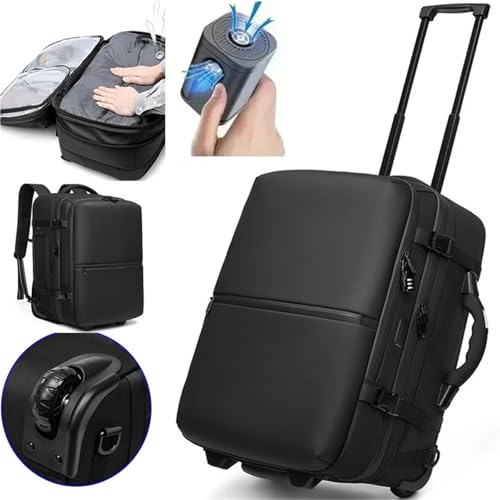 IRFHDCX Sac à dos de compression sous vide de 60 litres avec roues extensibles pour hommes sacs à dos de voyage imperméables pour ordinateur portable 17 pouces, 20, With air pump