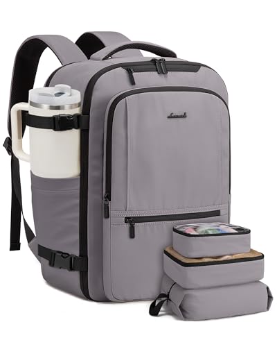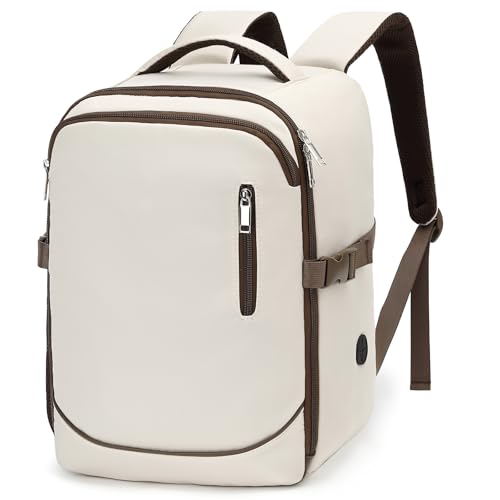 LOVEVOOK Sac à Dos de Voyage Femme, 50L Sac a Dos Bagages Cabine Avion pour Easyjet Ryanair, Imperméable Sac Ordinateur Portable 18 Pouces Valise de Travail Randonnée Affaires, Beige Kaki