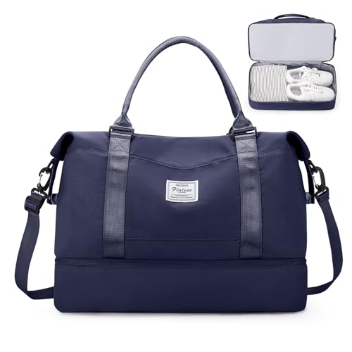 Sac de Voyage pour Femme,Cabine Avion Easyjet Bagage à Main Léger,Sac fourre-Tout de Sport Imperméable pour Week-End avec Compartiment à Chaussures pour Travel Gym Danse,B7-Bleu foncé