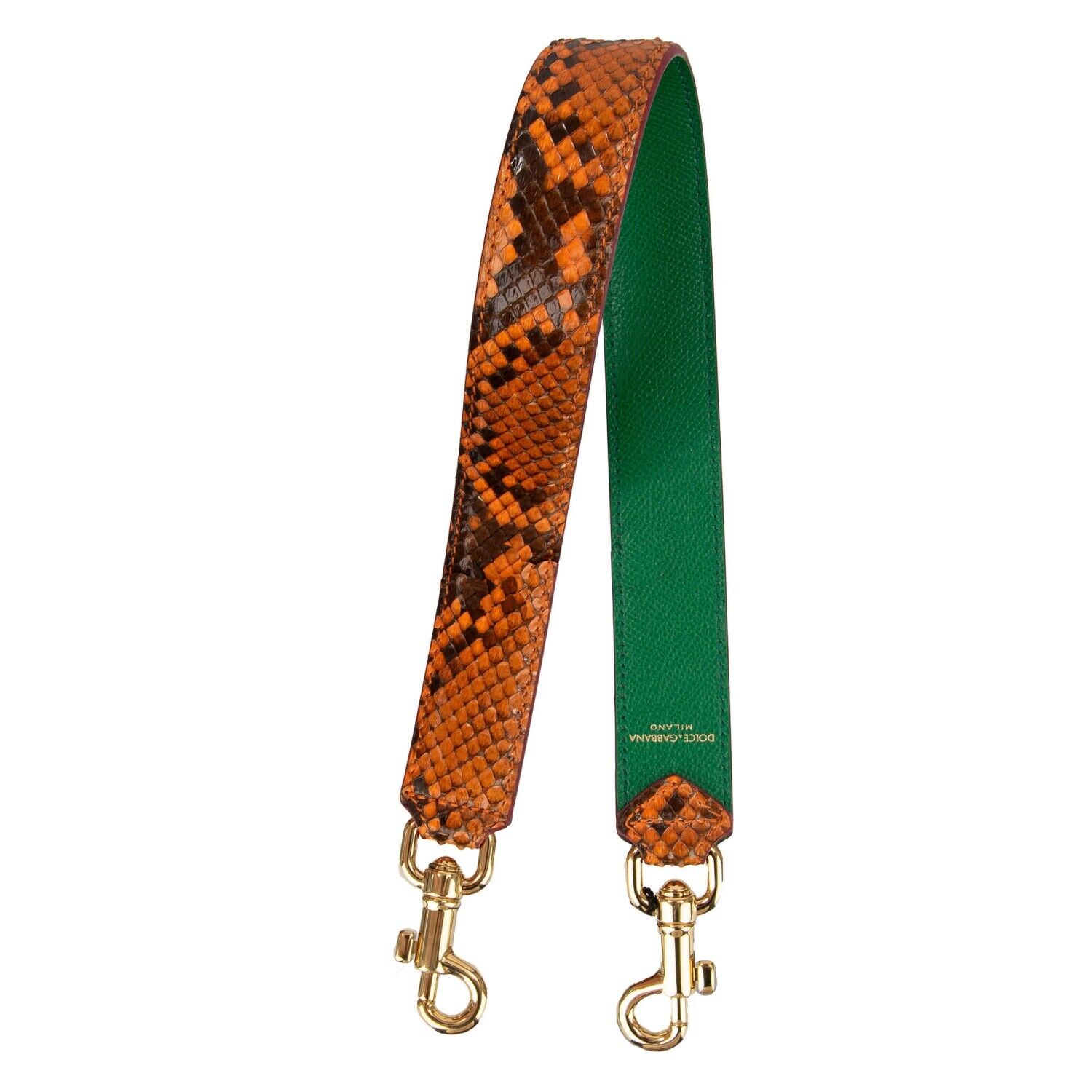 DOLCE & GABBANA Sangle En Cuir Pour Sac Orange Vert Or 12822
