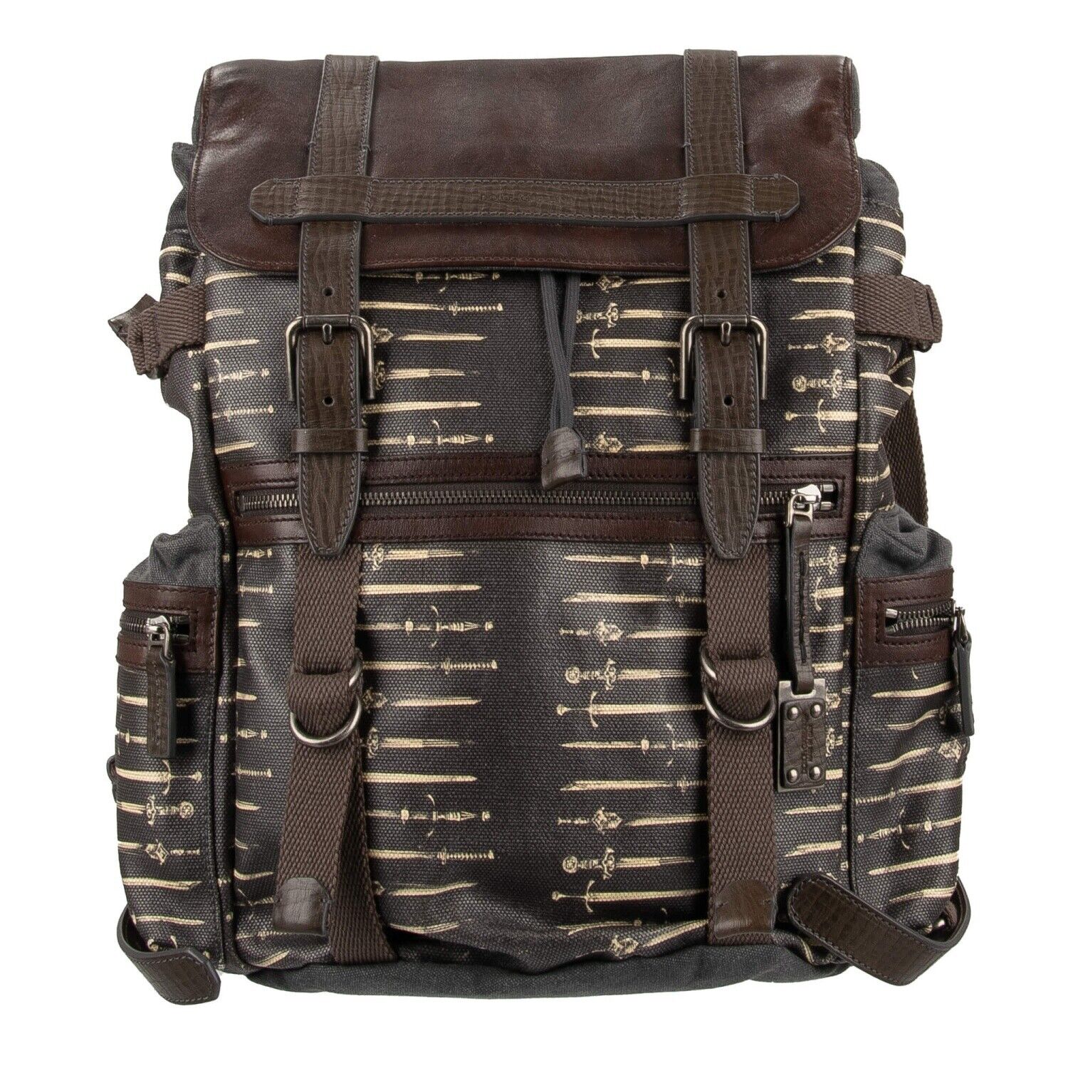 DOLCE & GABBANA Sac À Dos En Toile Militaire En Cuir Épée Pr. Noir Marron