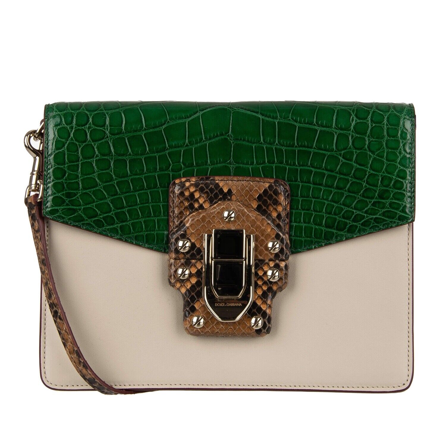 Dolce & Gabbana Crocodile Serpent Cuir de Veau Sac Lucia Gris Braun Vert 11010