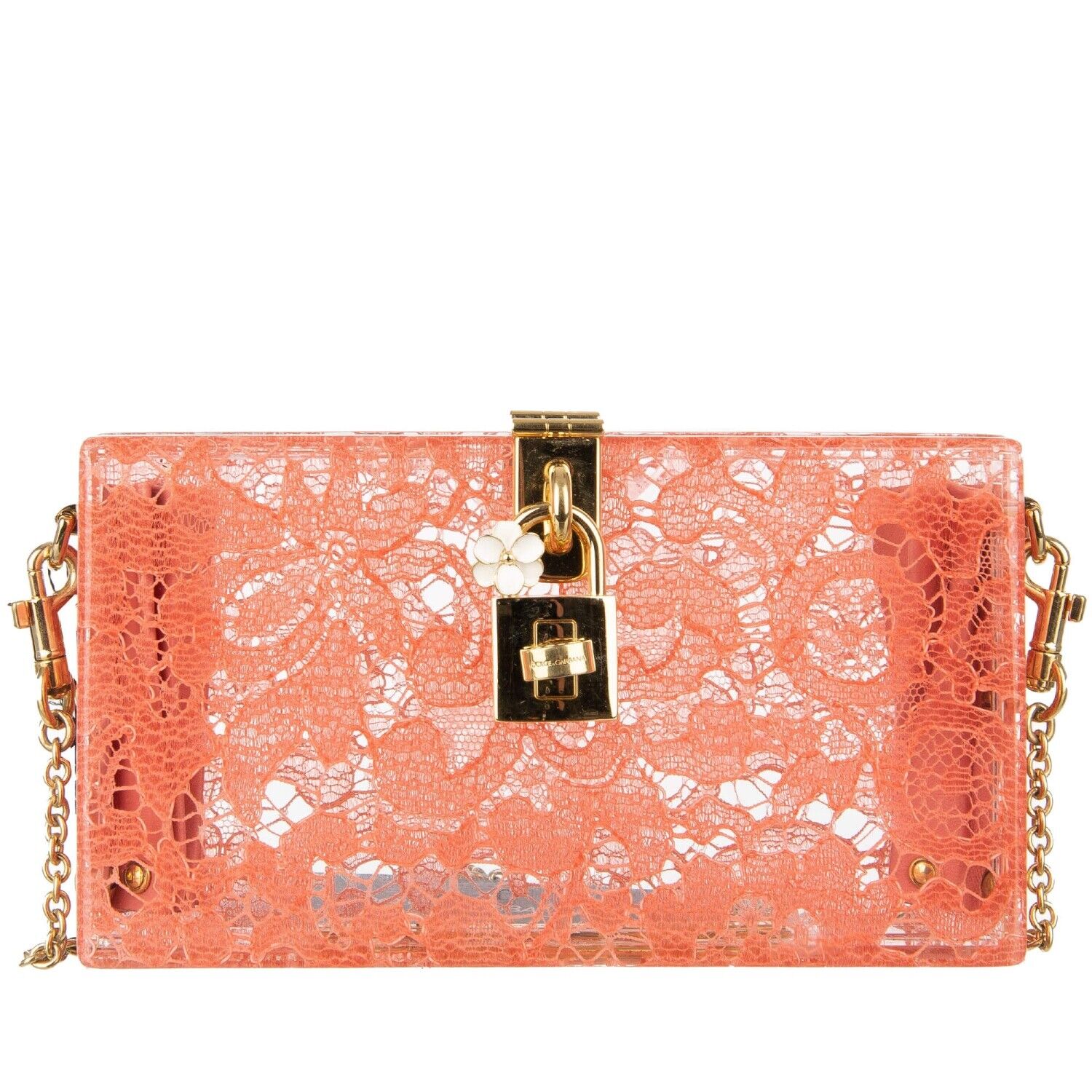 DOLCE & GABBANA Plexi Clutch Sac DOLCE BOX Taormina Dentelle Pivoine Rose 09929