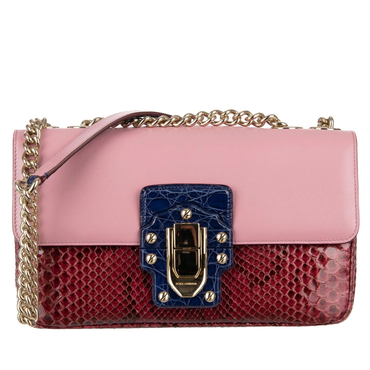 DOLCE & GABBANA Sac En Cuir De Crocodile Serpent Lucia Rouge Rose Bleu 11008