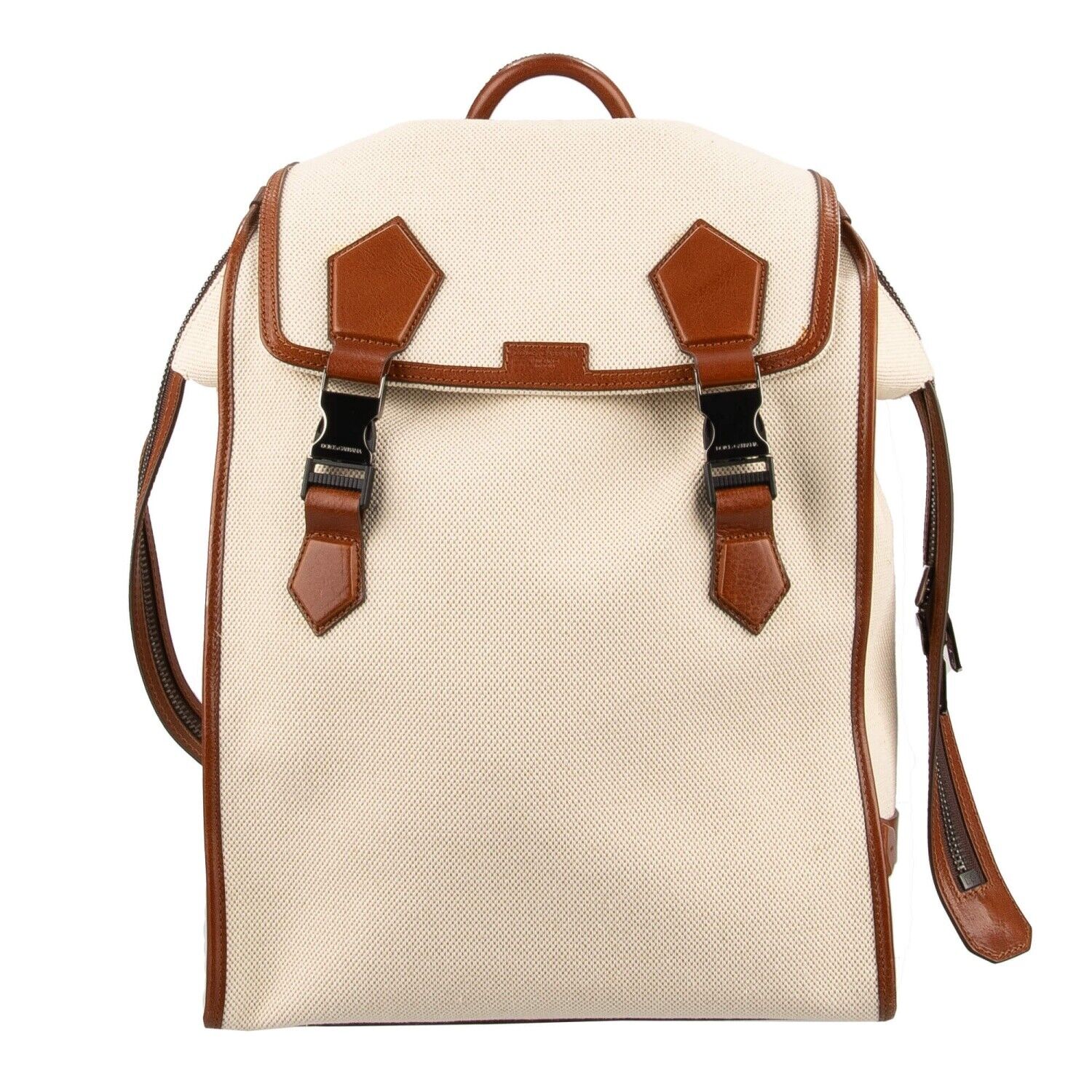 DOLCE & GABBANA Grand Sac À Dos En Toile Et Cuir EDGE Avec Logo Beige Marron