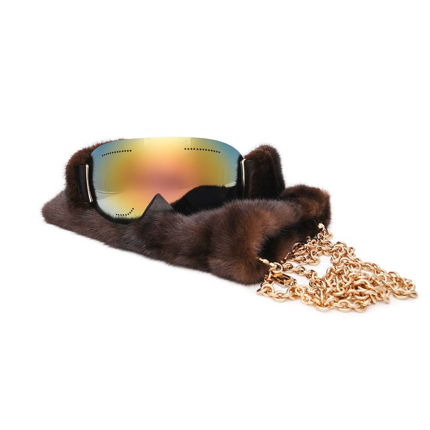 Dolce & Gabbana Vison Chaîne Sac Masque Lunettes de Ski Soleil Or 12241