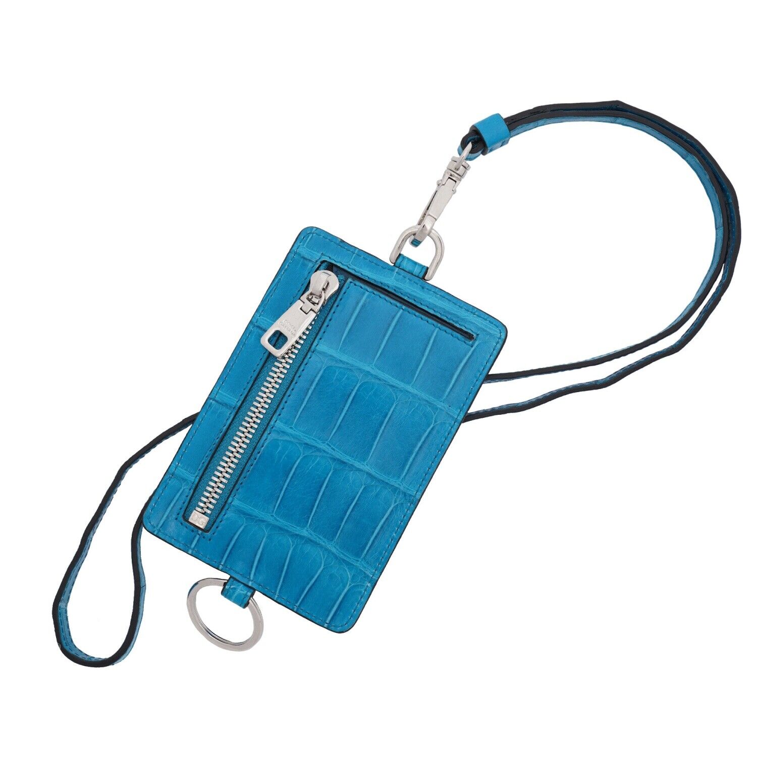 Dolce & Gabbana Dg Logo Cuir Croco Étui Sac Portefeuille Porte-Monnaie Bleu
