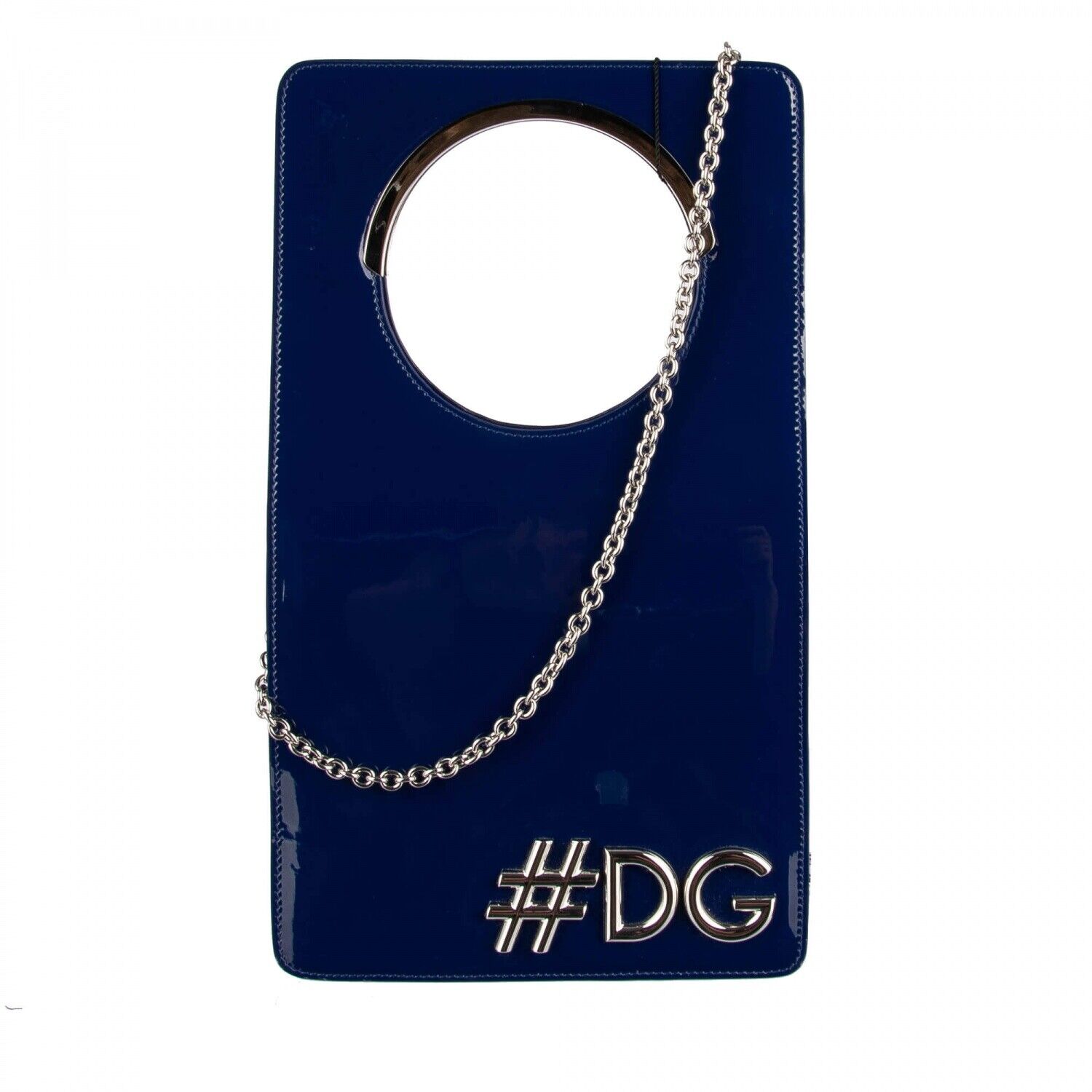 DOLCE & GABBANA Sac Clutch En Cuir Laqué Hashtag DG GIRLS Bleu 08952