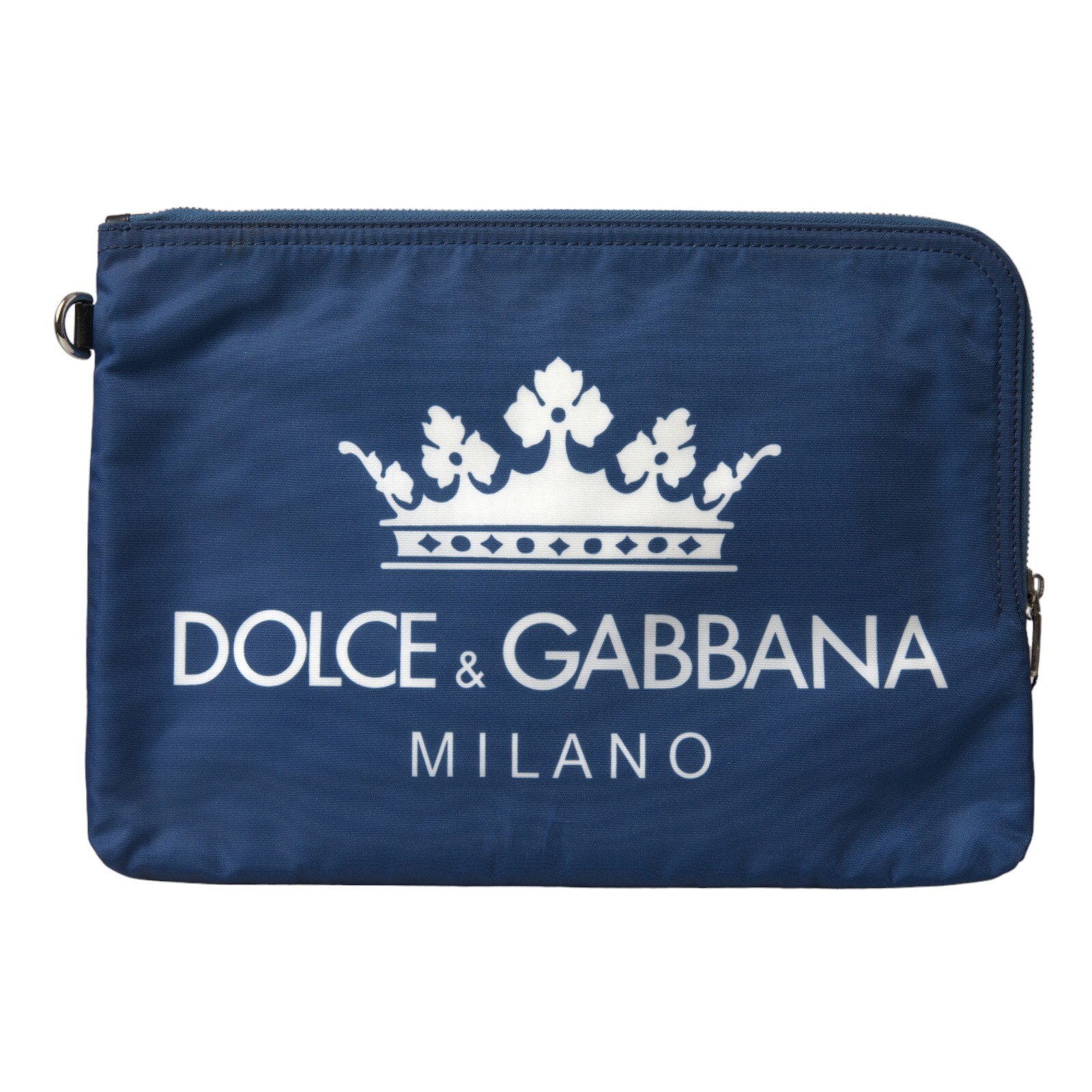 Sac DOLCE & GABBANA Bleu Imprimé DG Milano Poche Clutch Homme Borse RRP 560USD