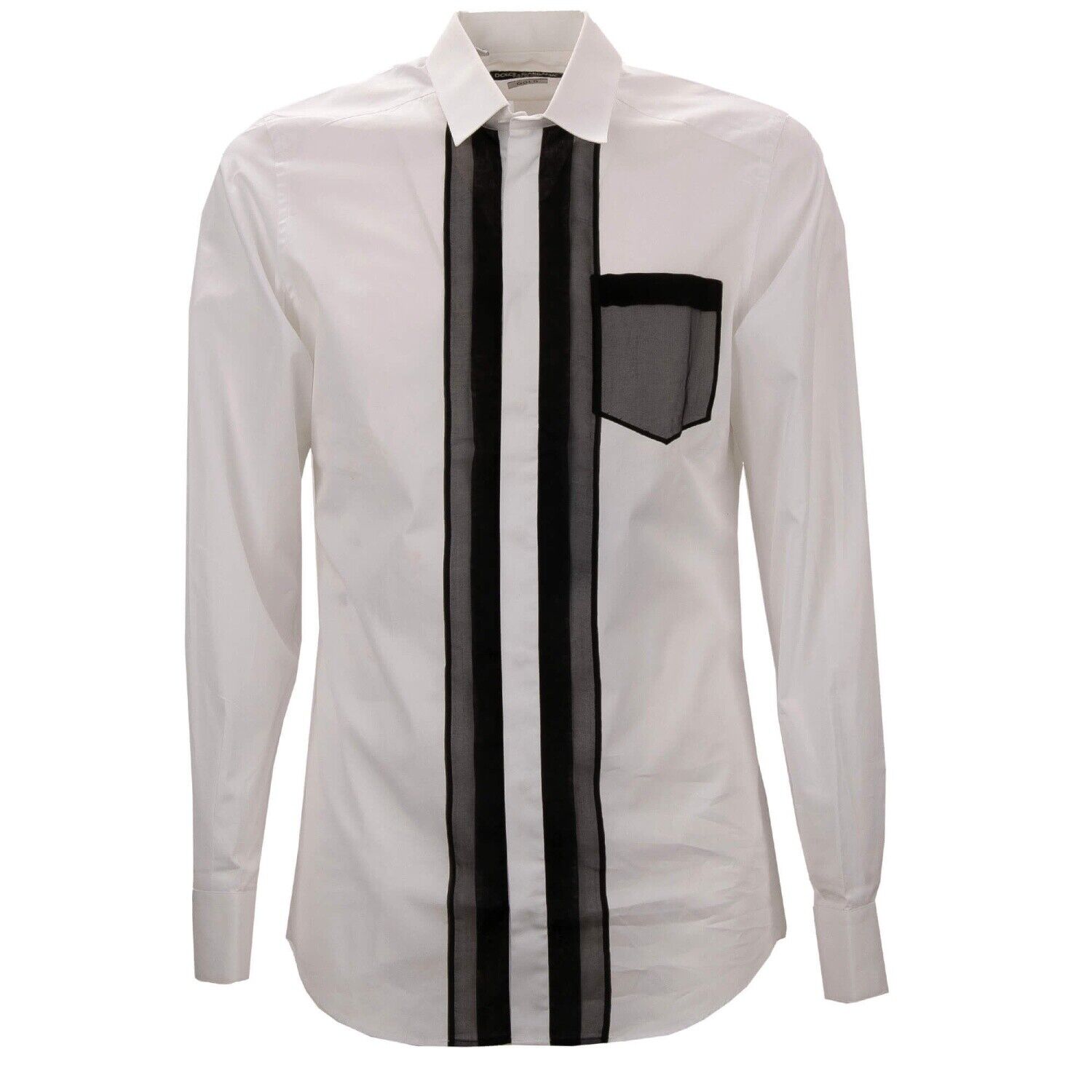 DOLCE & GABBANA Sac Chemise En Soie Coton Or Blanc Noir 39 15,5 S 13335