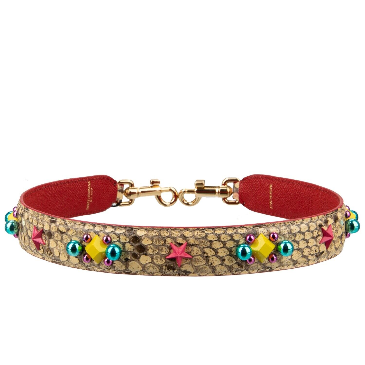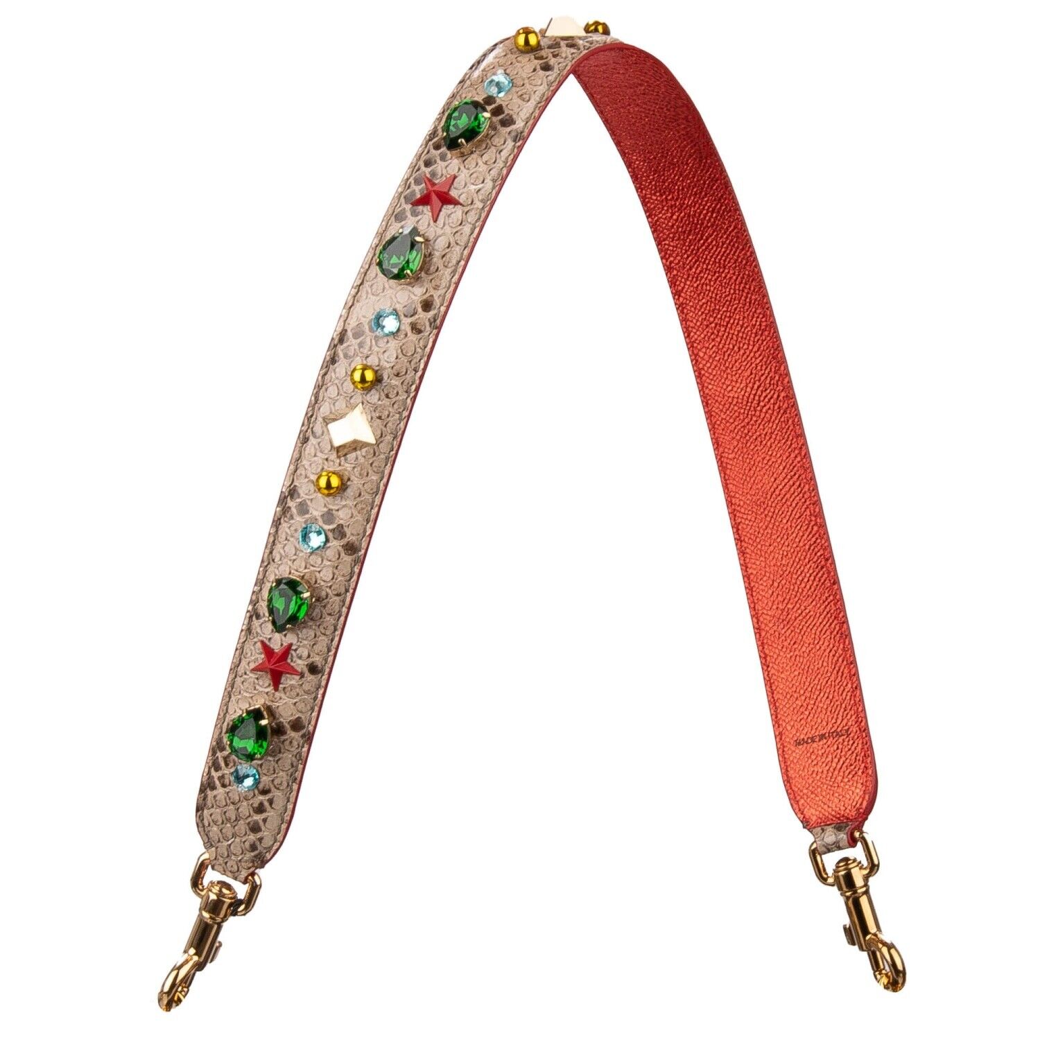 DOLCE & GABBANA Sangle En Cuir Pour Sac Rouge Vert Or 12828