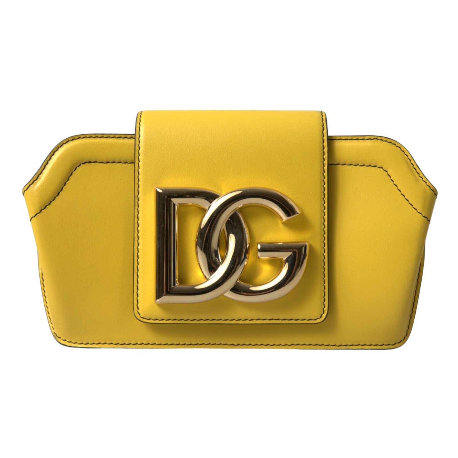 Sac DOLCE & GABBANA Jaune En Cuir Lisse Avec Logo DG Clutch Crossbody 2850USD