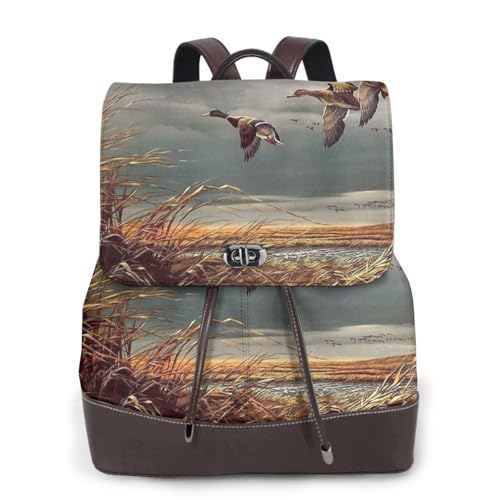 Sac à dos de chasse avec imprimé canards sauvages - Imperméable - Antivol - Léger - En cuir synthétique - Pour l'école, le voyage, Noir , Taille unique