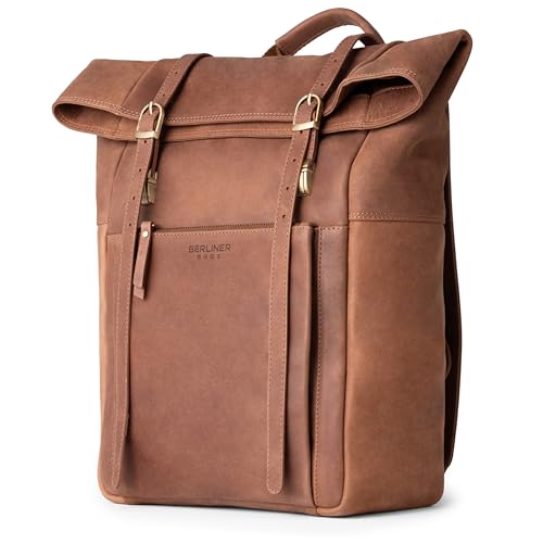 Berliner Bags Lille Sac à Dos Urbain Rolltop en Cuir Véritable Imperméable pour Homme et Femme, Sac Ordinateur Portable 15 Pouces Idéal pour le Travail, les Voyages – Design Élégant – Marron