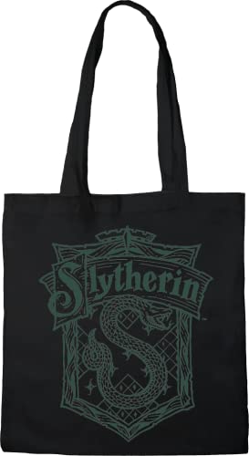Cotton Division Officiel Harry Potter Logo imprimé 100% coton |Réutilisable | Longue poignée | Voyages et achats |Sac fourre-tout 38 * 40 CM, Slytherin_Black_1, Taille unique