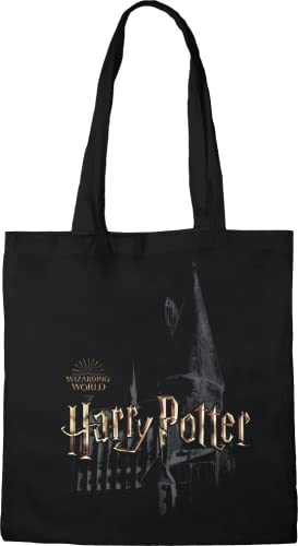 Cotton Division Officiel Harry Potter Logo imprimé 100% coton |Réutilisable | Longue poignée | Voyages et achats |Sac fourre-tout 38 * 40 CM, Wizard_Black_1, Taille unique