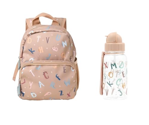Tutete Set Sac à Dos École Maternelle | Sac à Dos Petite Taille avec Gourde Tritan 500 ML pour Enfant | Léger, Pratique et sans BPA | Idéal Crèche, École et Sorties | Funny Letters