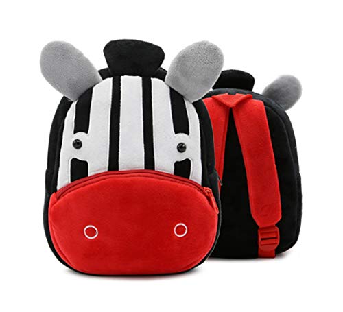 Freesiom Sac à Dos Enfant Maternelle Primaire Garderie Fille Garçon Zebre Animaux Bébé Creche École Fourniture Scolaire Kawaii Fun Original Peluche Cadeau Noel-2-4 Ans (Rouge Noir et Blanc)
