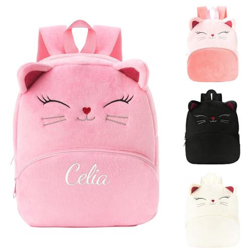 Personnalisable Sac a Dos Enfant Fille, Petit Sac à Dos Enfant, Personnalisé Brodé Prenom Cartable Primaire Sac a Dos Enfant Maternelle pour Fille, Chat Sac à Dos Ecole Crèche Backpack (Rose)