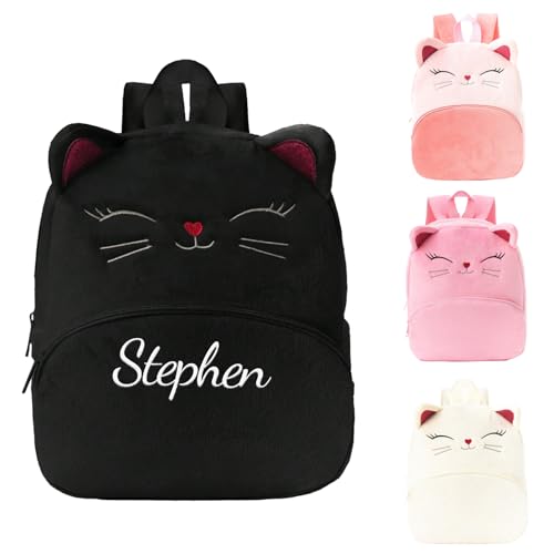 Personnalisable Sac a Dos Enfant Fille, Petit Sac à Dos Enfant, Personnalisé Brodé Prenom Cartable Primaire Sac a Dos Enfant Maternelle pour Fille, Chat Sac à Dos Ecole Crèche Backpack (Noir)